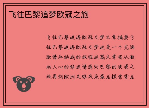 马赛之行:挑战与冒险的全新体验摘要:马赛是一个充满挑战和冒险的地方,从悬崖跳水到滑翔伞飞行,无处不体现着刺激和创新。本文将从四个方面对马赛之行的挑战与冒险进行详细阐述,包括水上运动、悬崖跳水、滑翔伞飞行和登山徒步,带您领略这座城市的不同风貌和无限可能。水上运动马赛位于地中海沿岸,拥有得天独厚的水上运动资源。海滨悬崖俯视,风浪拂面,船帆满载而来,体验冲浪的刺激无疑会让您流连忘返。此外,潜入海底,探索...